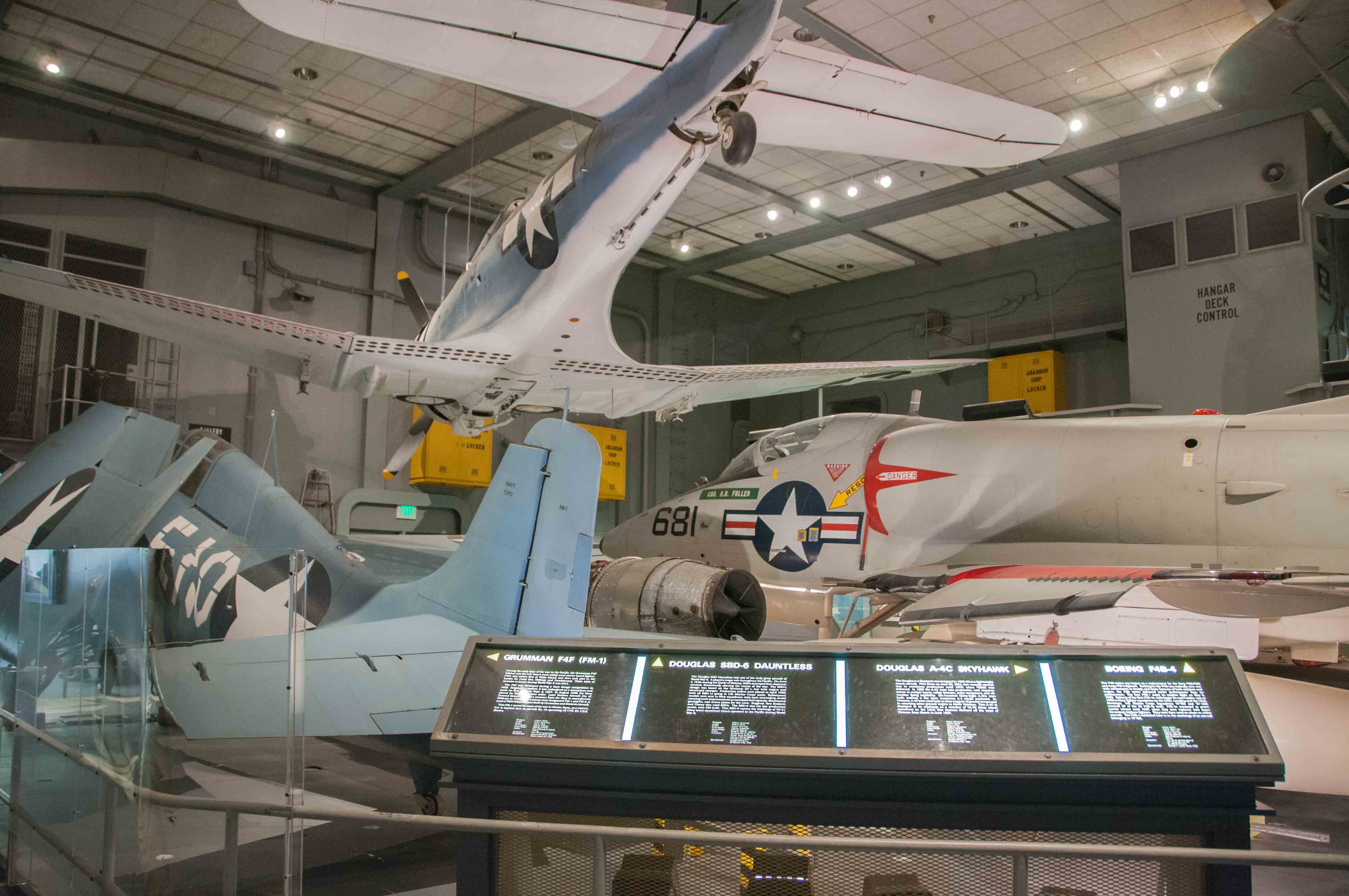 l to r - Grumann F4F, Douglas SBD-6 Dauntless, Douglas A-4C Skyhawk