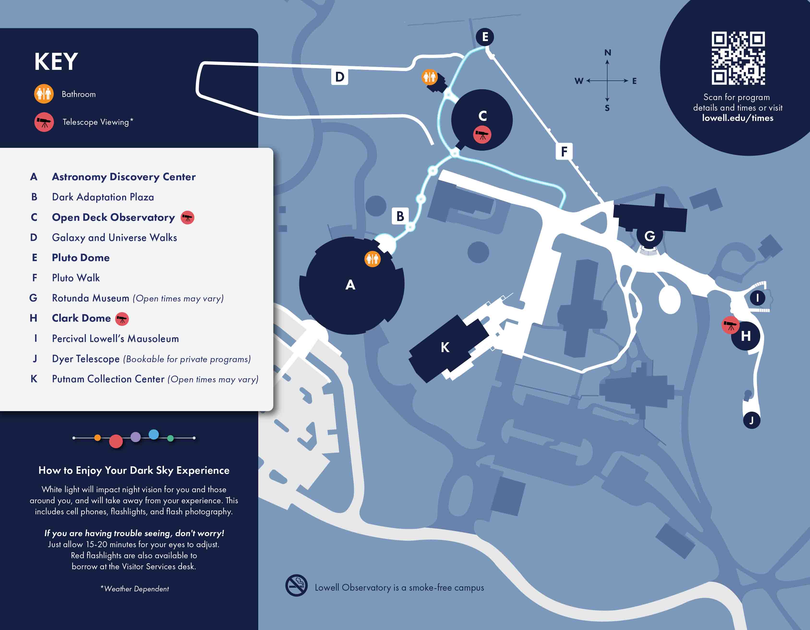 Background information obtained for Lowell Observatory sources and Wikipedia. Maps from Lowell Observatory Visitor Brochure.