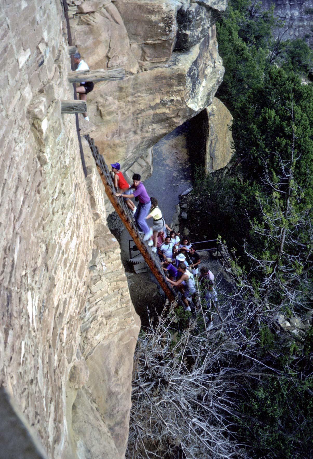 Visitors have to climb a long ladder at the north end