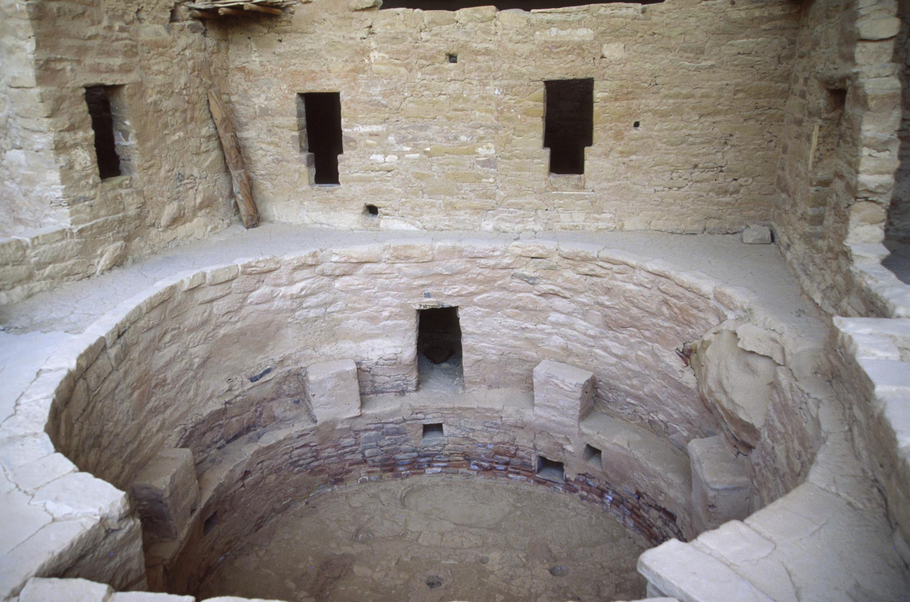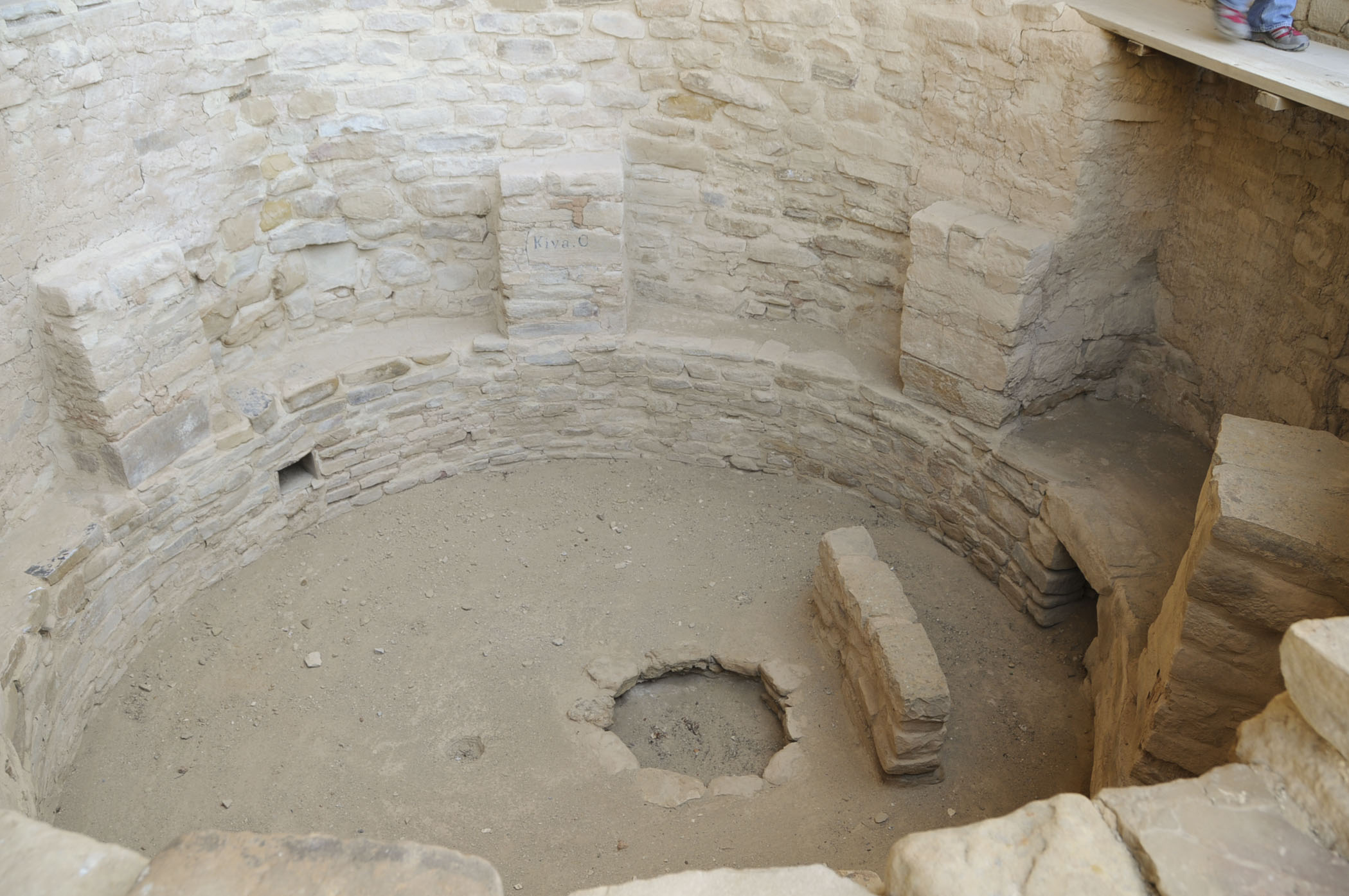 are circular. Features common in most kin kivas included a firepit and draft deflector, ventilation shaft,